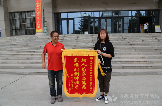 赵志廷家属向陕西财经职业技术学院学生阴凡静赠送锦旗