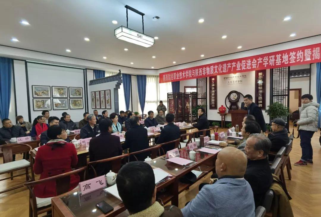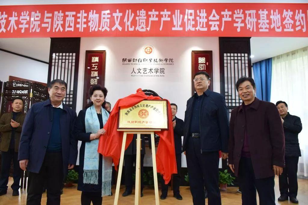 2019年12月11日,古都咸阳。由陕西省非物质文化遗产产业促进会、陕西财经职业技术学院联合举办,陕财职院人文艺术学院承办的“非遗产学研基地”签约揭牌仪式隆重召开,学院党委书记张志华、袁红会长及来自全省的非遗传承人、工艺美术大师、非遗企业代表和新闻媒体约五十余位嘉宾莅临见证此次活动。