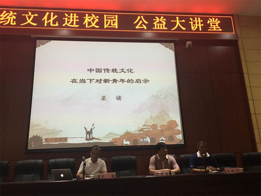 中国传统文化博大精深,在涵养心灵、引领成长方面发挥着潜移默化、润物无声的作用。讲座中,梁镛老师博古通今,和大家共同思索:作为新时代的青年,在当下该领悟什么?什么是中国传统文化?我们该如何学习和继承中国传统文化,让传统文化指导启示着我们的初心和本源?我们为什么而活着?怎样做人才能更有意义?一系列的问题在梁镛先生睿智轻松、妙语连珠的讲座中,找到了答案----当下的新青年,怎样学习和继承中国传统文化,让传统文化指导启示着我们的初心和本源,才是一种思想的唤醒和本源的行动;要解决个人生存的意义问题,就必须寻找个人与某种超越个人的整体之间的统一,寻找大我与小我,有限与个人的统一。