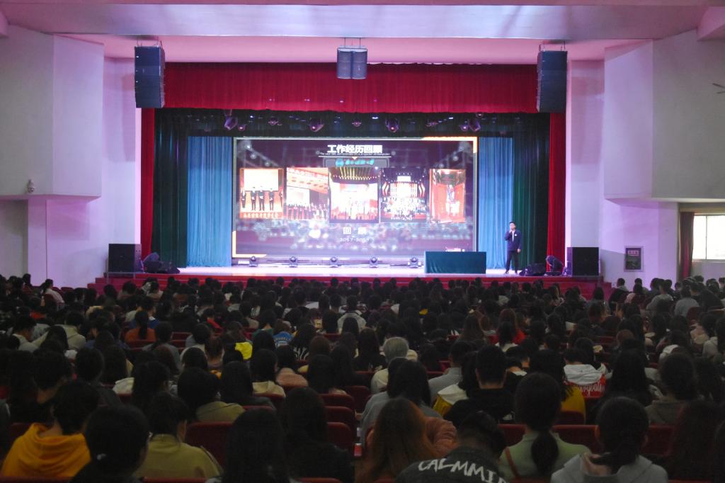 10月10日下午,团委在学院大礼堂举办了2019年大学生“微讲堂”系列活动第十二期,邀请西安财经大学学生会主席马子俊担任主讲人以《如何做一名优秀的学生干部》为题,为我院在场学生讲解如何在校期间做好学生干部工作。此次活动为我院与西安财经大学签订框架协议之后的落地之举。出席本次活动的有学院团委书记窦曼娟、八大学生组织干部、各二级学院学生分会干部以及学生代表共计1500余人。团委干事贺华主持。