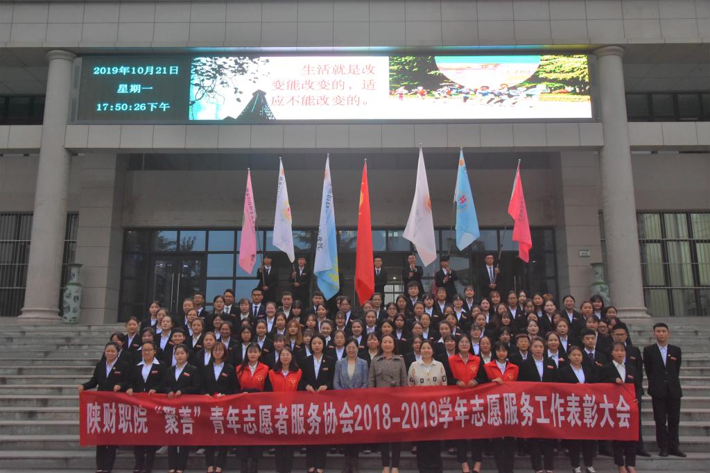 刘红鸽宣读了《陕西财经职业技术学院“聚善”青年志愿者服务协会2018—2019学年志愿服务工作表彰决定》,王炅宣读了《陕西财经职业技术学院“聚善”青年志愿者服务协会2018-2019学年干部聘任决定》。与会人员为获奖及聘任学生颁发证书并合影留念。