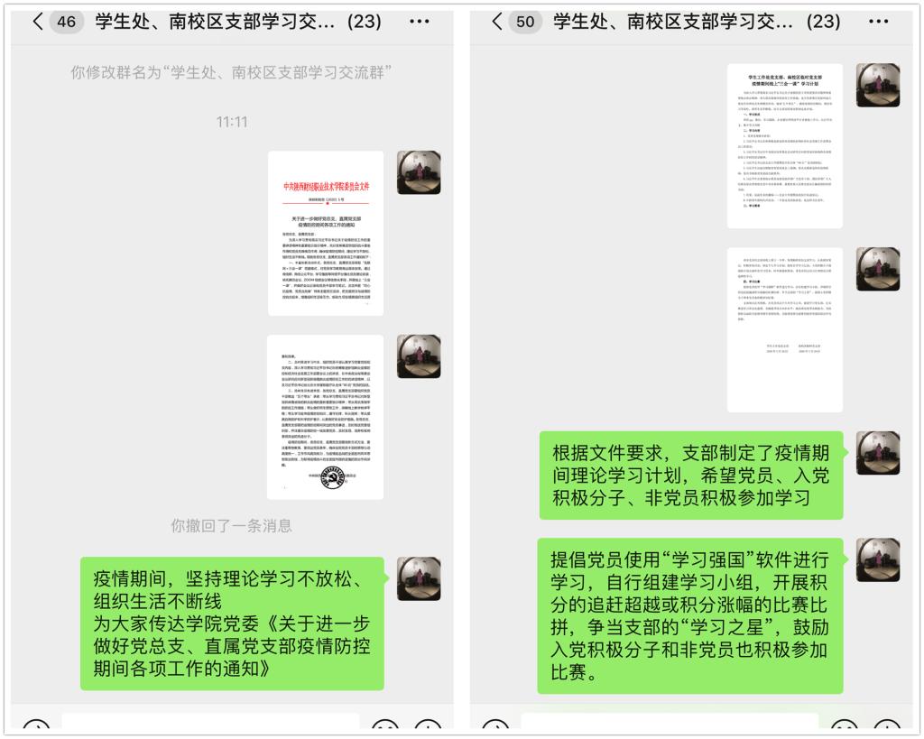 接学院党委《关于进一步做好党总支、直属党支部疫情防控期间各项工作的通知》,学生工作处和南校区迅速反应,并扎实落实。