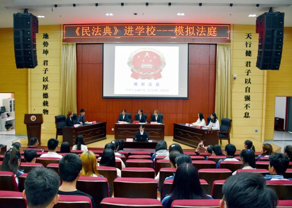 为落实《陕西财经职业技术学院关于秋季开学期间组织开展“民法典进学校”等活动》的通知精神,2020年9月24日下午,经济与金融学院在学术报告厅组织开展了“民法典进学校”之模拟法庭活动,共有师生百余人观摩旁听了模拟庭审活动。