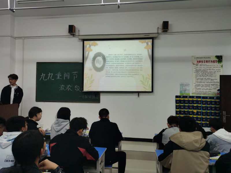 2020年10月25日,大数据与人工智能学院团总支组织2019级全体同学在教室里开展“庆重阳 忆故乡”重阳节活动,表达对故乡、亲人的思念之情。