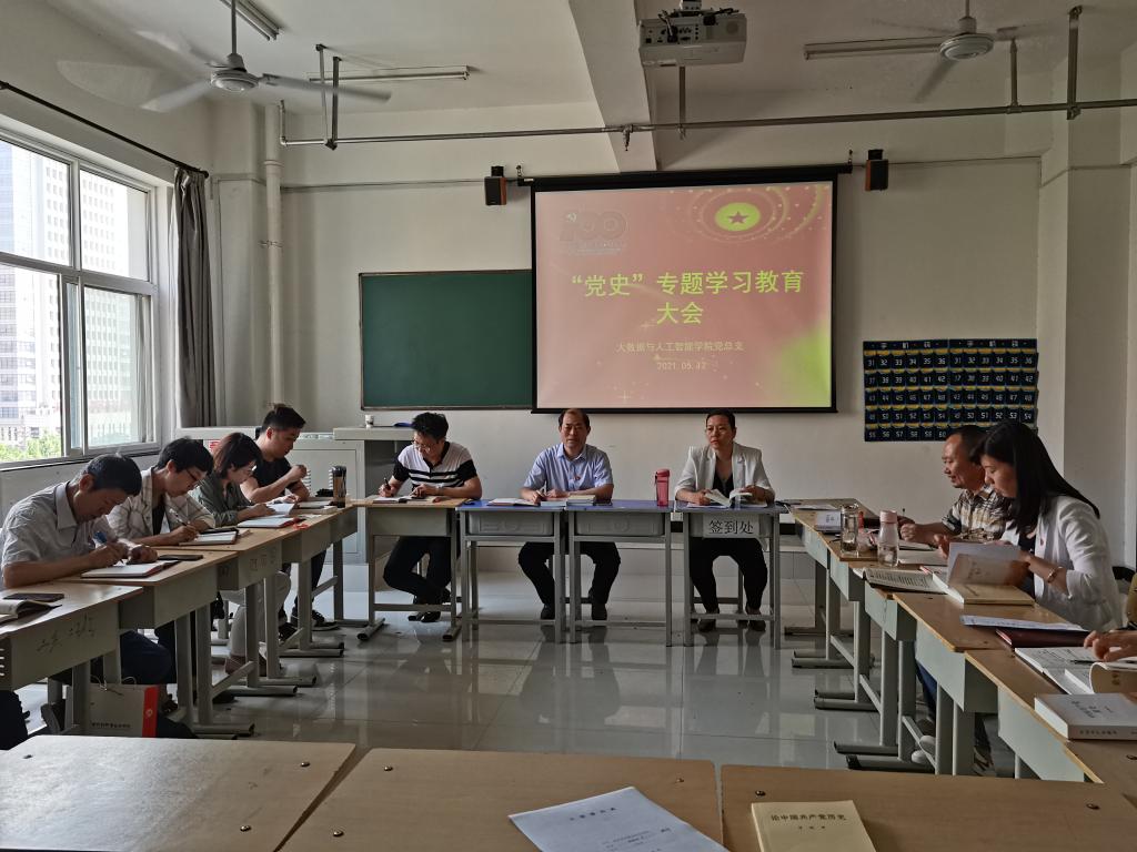 5月12日下午,大数据与人工智能学院党总支在教综楼513教室组织全体党员集中进行了“不忘初心,牢记使命,学党史、悟思想”为主题的政治理论学习,全体教工党员参加,此次学习由教师第一党支部书记朱龙梅主持。