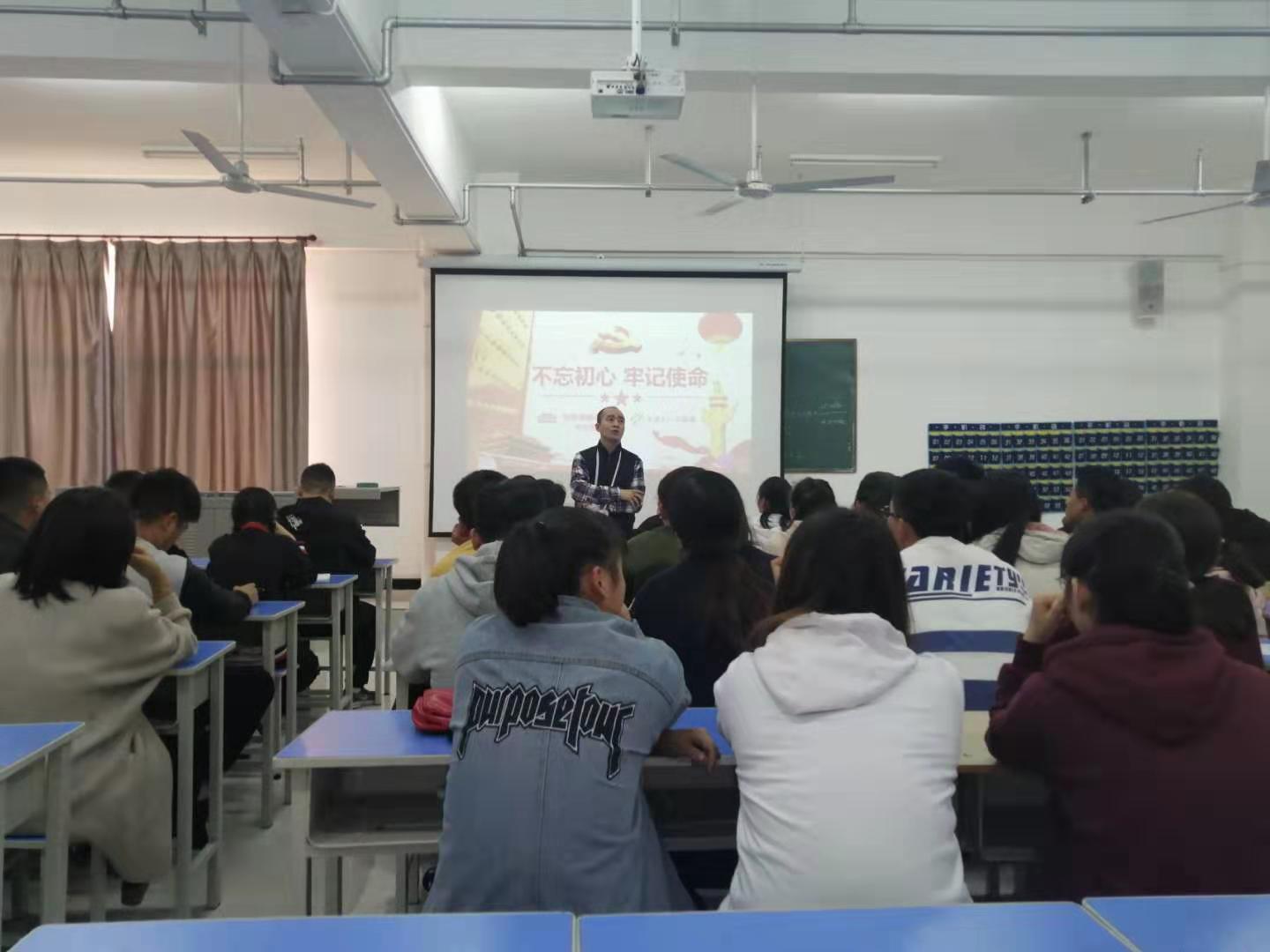 根据学院《“不忘初心、牢记使命”主题教育实施方案》安排,为增强主题教育深度,丰富方式方法,建设“党旗飘扬工程”,激励学生党员“不忘初心、牢记使命”,2019年10月16日下午5时,用友·新道会计学院学生党支部在综合楼425教室开展主题党日活动。本次活动形式为党支部书记讲党课。参加本次活动的有用友·新道会计学院133名学生党员。