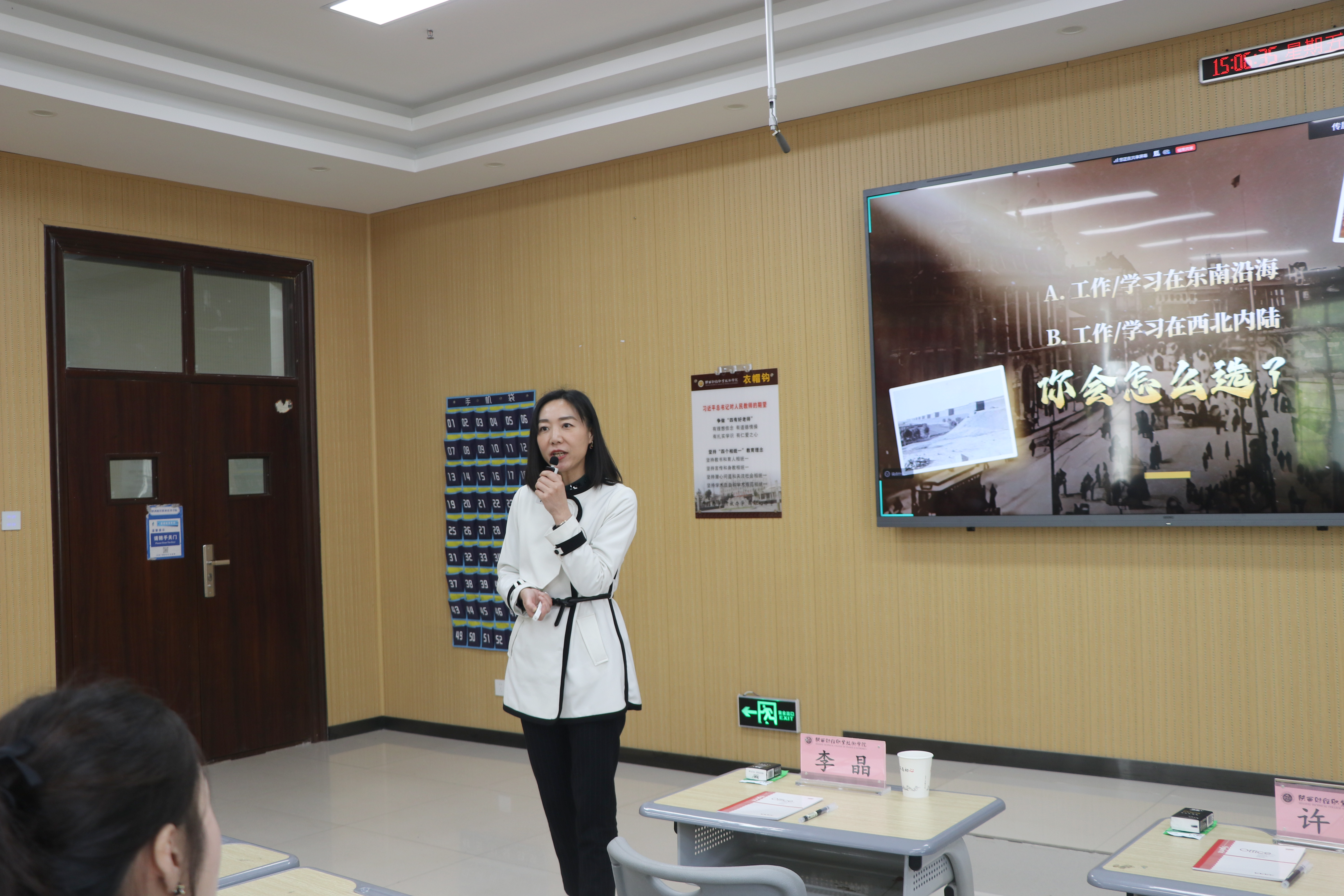 李晶以“延安精神代代相传”为题,通过讲述延安时期及其后继青年的事例,从心之所向、行之所依、情之所系、力之所在四个方面系统讲解了延安精神的丰富内涵与时代价值,使青年学生深刻领会到延安精神是信仰的灯塔、是奋进的号角,她以鲜活案例与榜样力量,激励青年学生从延安精神中汲取前行力量,以拼搏奋斗书写青春答卷,以实干担当扛起时代重任。