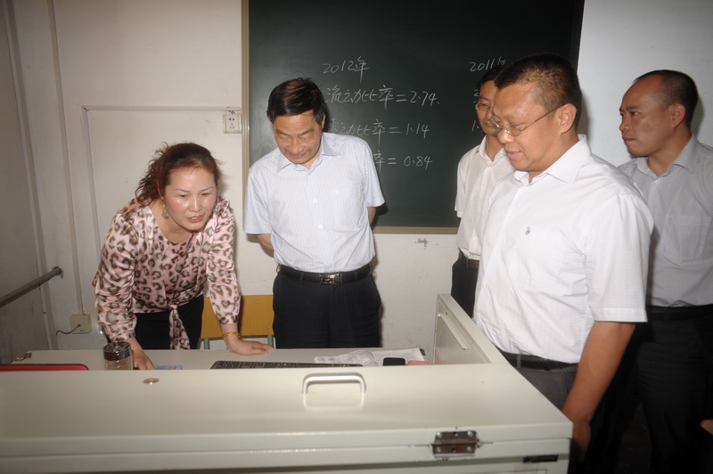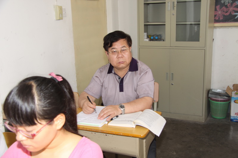| 专家组副组长张朝晖教授听课后检查授课教师的教学资料 |