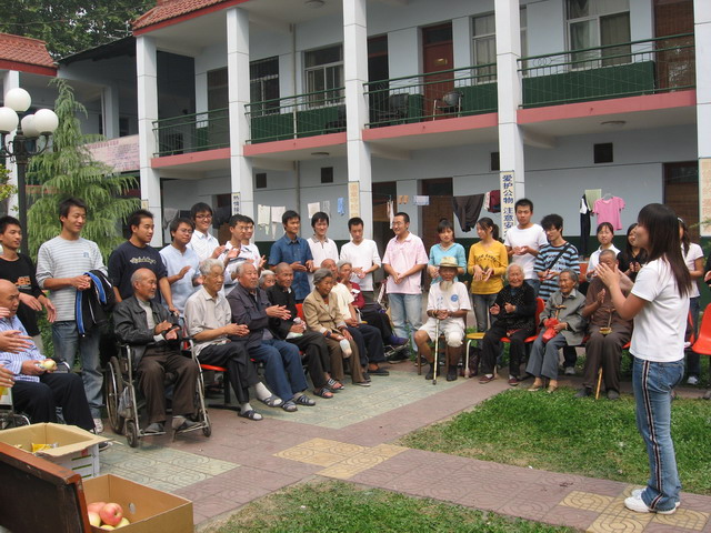 9月25日中秋节,秋高气爽,阳光灿烂。下午1时许,陕财职院32名学生会干部组成志愿者服务队,在团委书记宋波的带领下,利用休息时间来到咸阳市秦都区星光老年之家“夕阳红”托老中心看望孤寡老人。