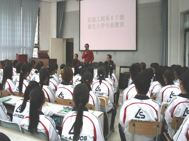 陕财职院信息工程系按照学院要求, 9月12日下午在东多媒体教室举行了07级新生入学专业教育。