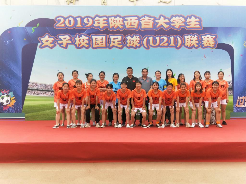 由陕西省教育厅、陕西省体育局主办,陕西省青少年校园足球工作领导小组办公室、陕西省学生体育协会、陕西省足球协会、西安邮电大学、西安外国语大学承办的2019年陕西省大学生女子校园足球(U21)联赛于2019年5月9日——5月20日在西安邮电大学、西安外国语大学举行。在学院领导的大力支持下,在体育部领导的现场督战下,2019年5月9日由我院女足队主教练刘明老师带领25名女足队员踏上比赛征程。参赛队员们齐心协力,顽强拼搏,经过12天的激烈角逐,荣获2019年陕西省大学生女子校园足球(U21)联赛第五名的佳绩。