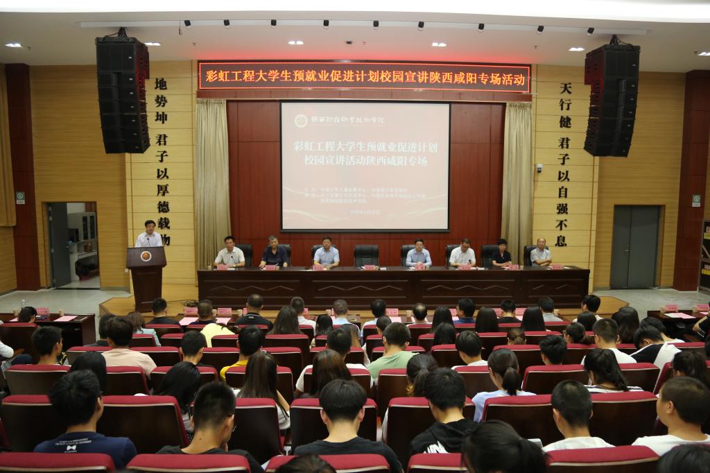 6月20日下午,我院在学术报告厅举办了彩虹工程大学生预就业促进计划校园宣讲陕西咸阳专场活动。共青团中央中国少年儿童发展服务中心副主任、中国青少年宫协会副会长吴扬杰,中国少年儿童发展服务中心文化交流中心负责人、中国青少年宫协会青年和社区工作部部长郭益民,共青团陕西省委副巡视员白敏,共青团陕西省委青年发展部部长李宗际,共青团咸阳市委书记刘杰,我院党委书记张志华,院长程书强出席。参加本次活动有陕西省16所高校负责共青团及就业工作的各位领导、76家招聘企业代表和我院400余名师生参加。会议由副院长于新和主持。