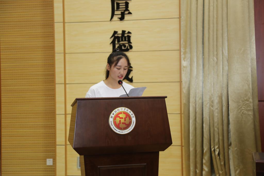 “千校万岗” 大学生就业精准帮扶行动就业学生代表王彩霞发言,分享了自己作为一名建档立卡的贫困学生在学院帮助下顺利完成学业,并找到了满意的工作,表达了对国家政策及学院老师由衷的感谢。