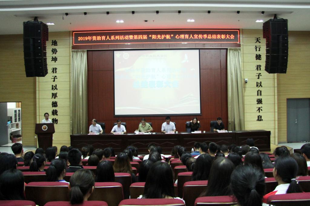 6月25日下午五点,我院2019年资助育人系列活动暨“阳光护航”心理育人宣传季活动总结表彰大会在学院学术报告厅举办,副院长于新和出席会议并讲话,同时参加会议的还有团委书记窦曼娟、管理学院党总支书记曾贵荣、经济与金融学院党总支书记曹耀辉、学生工作处副处长贺适、全体受表彰的老师和同学以及270名学生代表。会议由学生处处长雷旭主持。