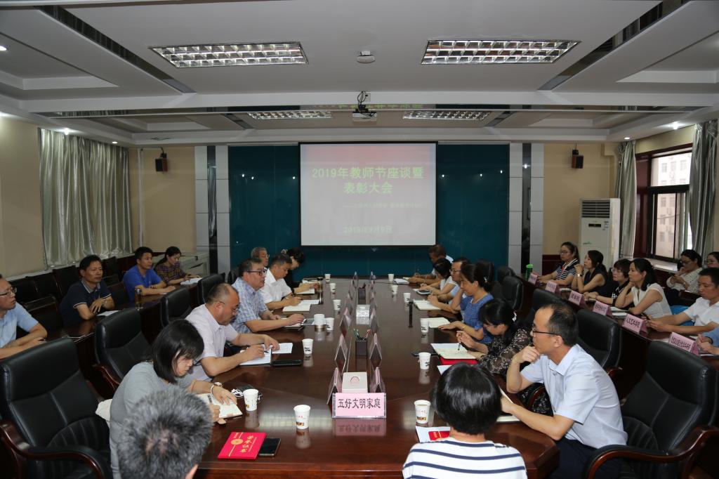 9月9日下午,我院召开庆祝第35个教师节座谈会。院长程书强出席并讲话,党委副书记朱华斌主持会议。学院各二级学院、体育课教学部、思想政治理论教学科研部教师代表及工会委员、工会先进个人代表共50余人参加了会议。本次会议的主题是“立德树人担使命,教育报国守初心”。
