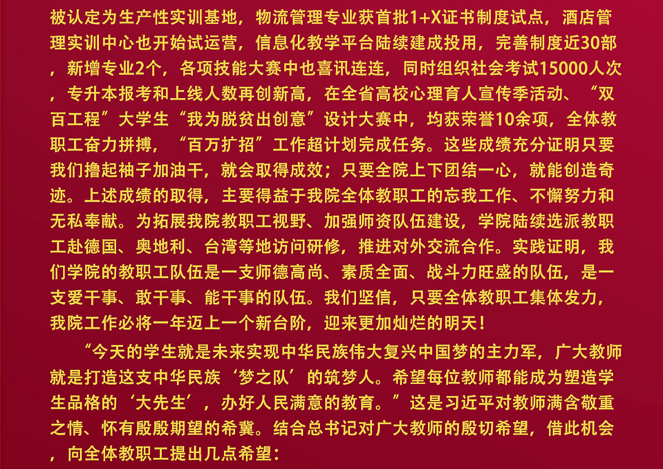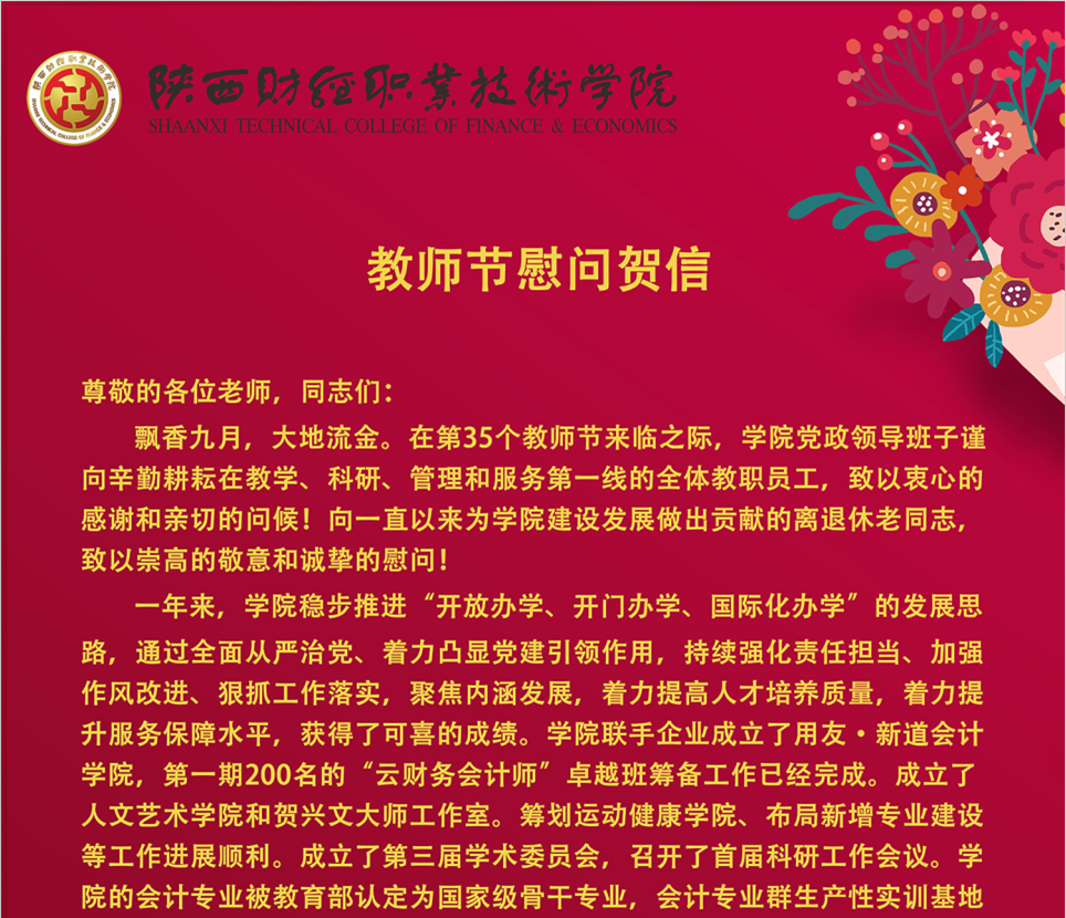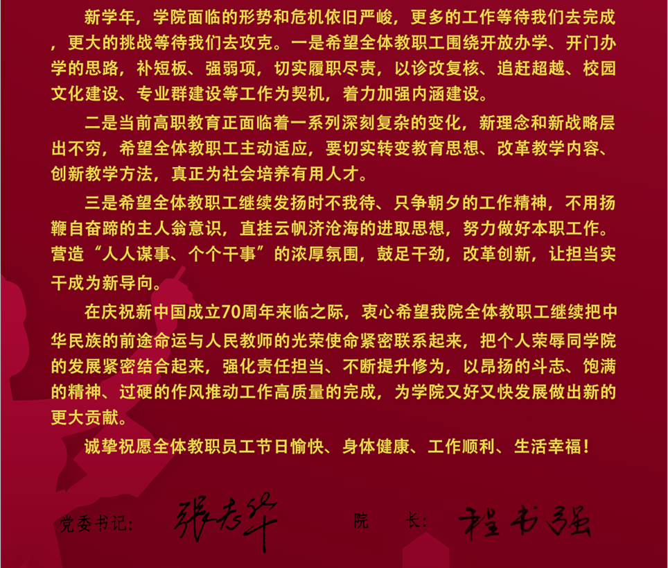 张志华书记、程书强院长代表学院党政领导班子祝全体教职工教师节快乐!