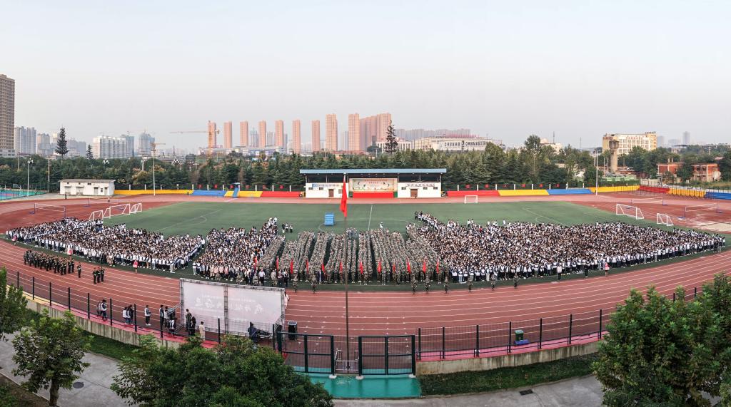 首先,窦曼娟宣布仪式开始并出旗。英姿飒爽的国旗护卫队队员护卫着鲜艳的五星红旗踏着整齐的步伐入场。在场的每一个人怀着对祖国无限的热爱和对浴血奋战的先烈们崇高的敬意高唱义勇军进行曲,6000多双眼睛注视着五星红旗在陕财职院的上空冉冉升起。