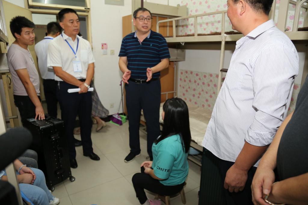 在新生报到当天,学院院长程书强到宿舍看望康同学,并和她父母亲切交谈,勉励她好好学习,叮咛宿管老师和周围同学多帮助她。