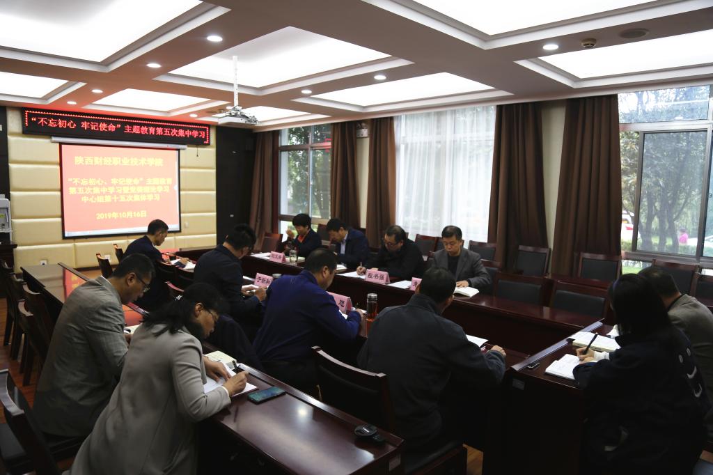 2019年10月16日,我院在实训楼一楼招就会议室召开“不忘初心、牢记使命”主题教育集中学习暨党委理论学习中心组集体学习会议,传达学习全省“不忘初心、牢记使命”主题教育推进会精神,集体学习红船精神、长征精神、《人民日报》评论员文章。党委领导班子成员参加,学院党政办、党委组织部、党委宣传部、纪检监察处负责人列席。党委书记张志华主持。
