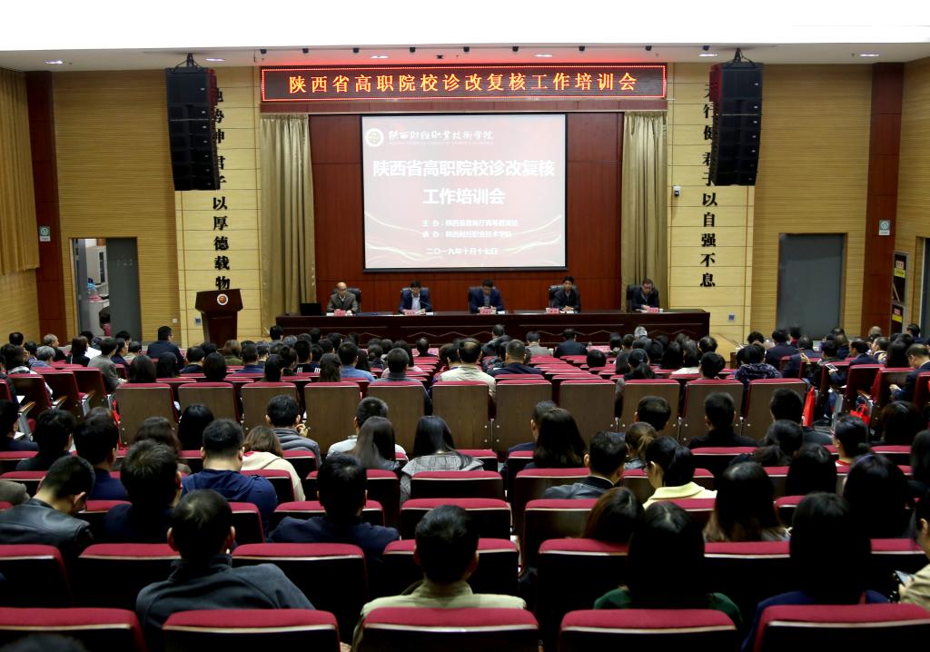 2019年10月17日上午,陕西省高职院校诊改复核工作培训会在我院学术报告厅召开。陕西省教育厅高教处处长胡海宁,陕西省高职院校教学工作诊断与改进专家委员会主任委员、陕西省职业教育学会会长崔岩,学院党委书记张志华、院长程书强出席开幕式。来自全省20所高职院校的领导及教师代表,我院全体院领导、处级干部、行政人员、无课教师、专业负责人和课程负责人近400人参加培训会。