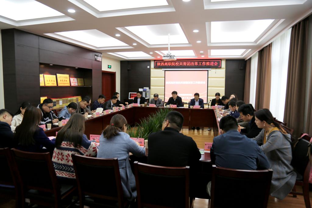 10月25日下午2:30,陕西高职院校共青团改革工作推进会在我院成功举办。出席此次会议的有共青团陕西省委副书记鲁镇、学校部部长郝鹏涛,我院党委书记张志华、党委副书记朱华斌,以及全省22所高职院校的团委书记共计27人。