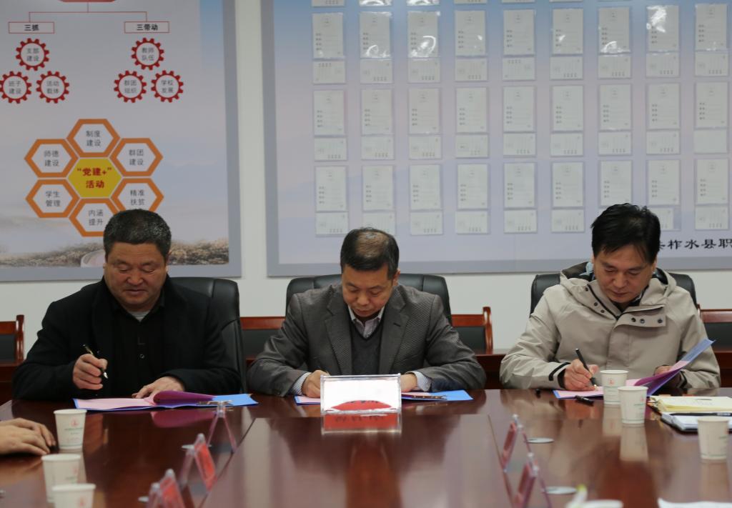 | 党委副书记朱华斌代表学院签订三方协议 |