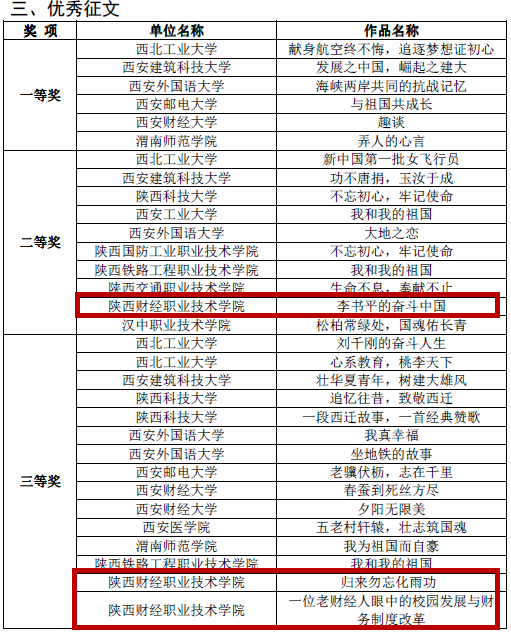 近日,省教育系统关工委表彰了“读懂中国”优秀单位,经过专家评审,在全省27所高校中评选出优秀组织奖10个;在上报的357篇征文中,评选出优秀征文30篇。我院在此项活动中表现突出,荣获单位“优秀组织奖”。征文《李书平的奋斗中国》荣获优秀征文二等奖,征文《归来勿忘化雨功》和《一位老财经人眼中的校园发展与财务制度改革》分别荣获三等奖。