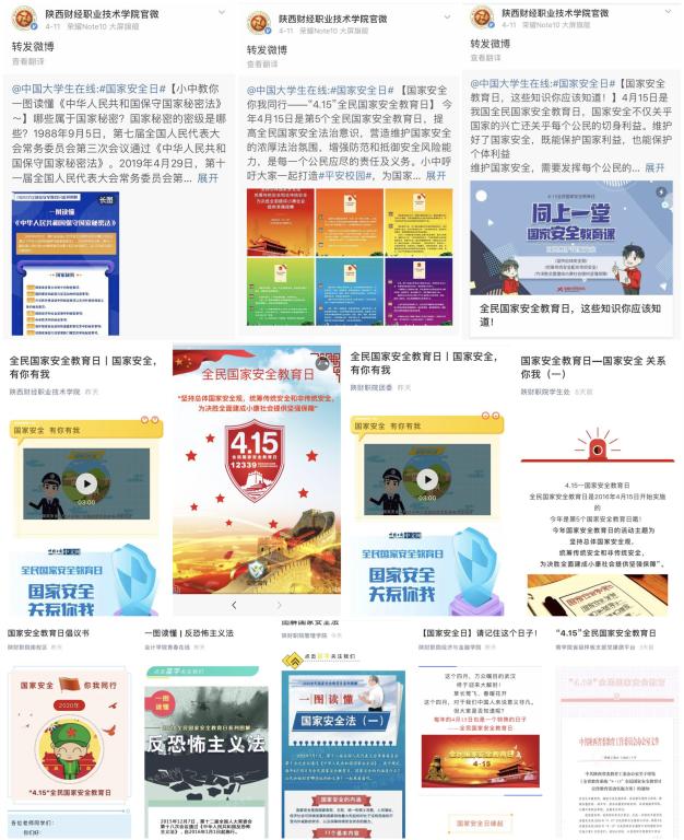 学院及各二级学院官微适时发布国家安全教育相关内容,并发起话题讨论,我院师生积极参与,转发留言,掀起学习浪潮。