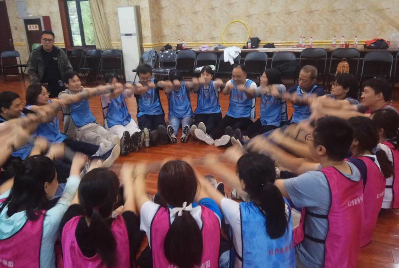 下午2点,全体队员迅速集合,开始了正式的团队拓展训练。在教练的指导下,两支队伍分别完成了达芬奇密码、呼啦圈传递及“我们是最棒的”等团队活动。活动中,教练都会留十分钟让各团队总结经验,不断调整状态、发现问题、解决问题。当活动结束时,全体队员们高声欢呼,意犹未尽,每个人都流露出欣喜、兴奋、不可思议的目光,这不仅是对自身能力突破的认可,也是对团队凝聚力的认可。