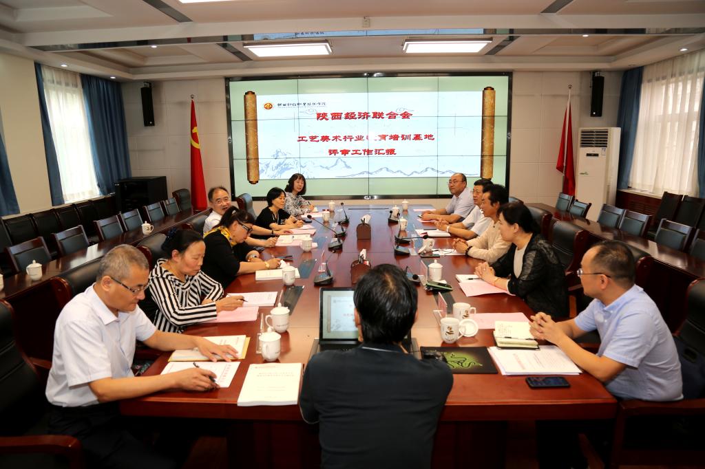8月20日上午,陕西经济联合会工艺美术行业教育培训基地评审会议在我院办公楼四楼会议室举行。陕西经济联合会副会长王奋利、经贸合作部部长李茹、综合部部长谢会娜、发展研究部部长吴飞等经济联合会领导出席了会议,陕西省工艺美术学会理事长祝彦卿、陕西省工艺美术协会会长张俊峰、陕西省建材技工学校校长古戈峰作为评审专家出席此次会议。我院党委书记张志华、人文艺术学院院长贺兴文、人文艺术学院执行院长崔斗、科研处处长陈红梅、工会主席王爱军等参加了会议。王奋利主持会议。