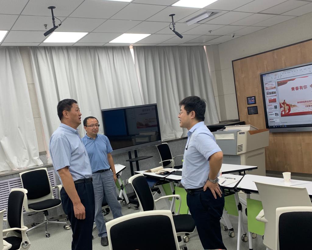 9月1日上午,学院党委书记张志华、副书记朱华斌来到综合楼718智慧教室,看望慰问暑期思政课“大练兵”教师。
