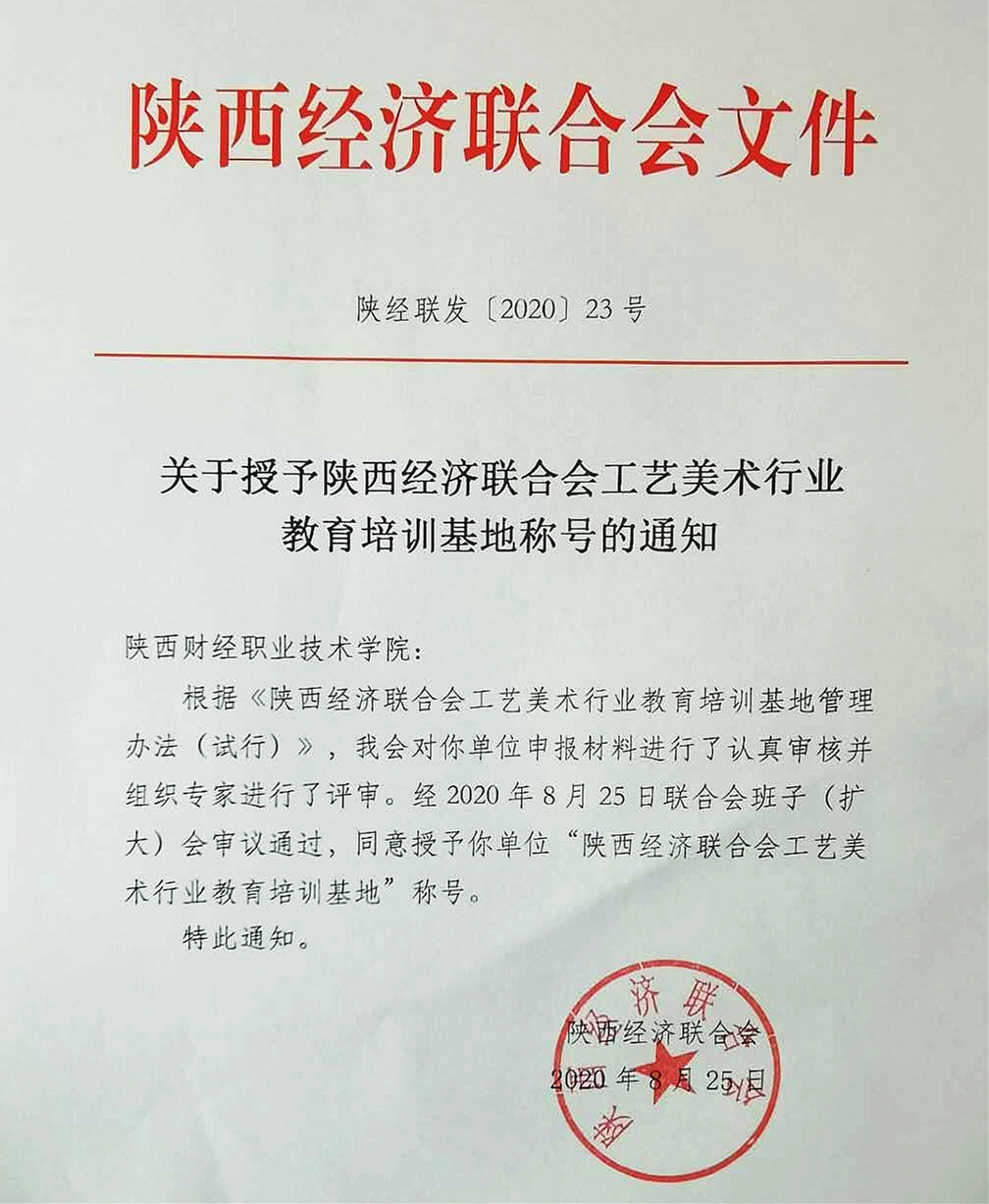 日前,陕西省经济联合会正式发布公文,授予我院“陕西经济联合会工艺美术行业教育培训基地”称号。
