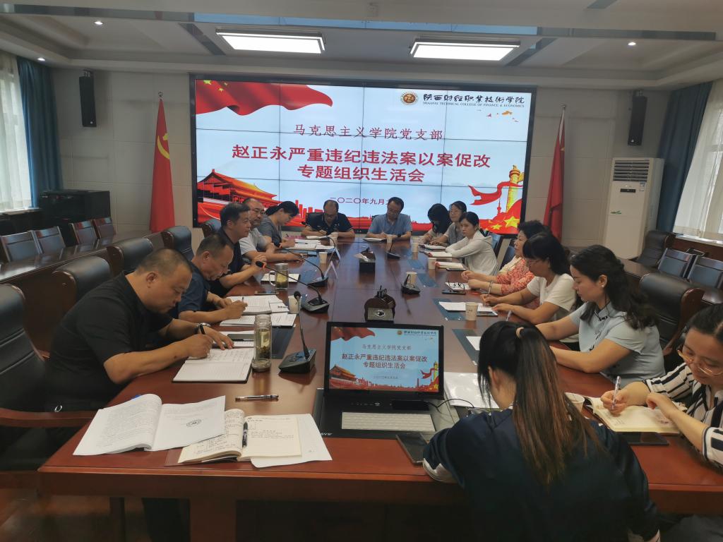在专题组织生活会上,马克思主义学院党支部书记陈志宏报告了专题组织生活会前期准备情况,他指出,马克思主义学院党支部高度重视此次赵正永严重违纪违法案以案促改专题组织生活会,会前专题召开支委会,学习研讨专题组织生活会有关文件精神,安排处级中层领导干部进行学习和自查,开展党员谈心谈话工作,讨论确定召开专题组织生活会各项事宜。随后,陈志宏代表班子成员作对照检查,并带头作了个人检视剖析,其他2名副处级以上党员领导干部联系思想、工作、生活和作风实际,对照6个方面进行个人对照检查,查找问题,做出说明,制定整改措施。最后,班子成员和支部委员逐一提出了批评意见和建议。