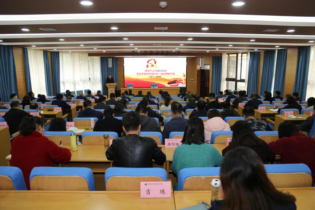 11月4日下午,院长程书强以《厘清个人与组织关系 在实干担当中成长为一个合格的干部》为题,在继续教育中心培训厅为处科级干部培训班作专题报告,院领导班子成员和全体处科级干部100余人聆听报告。报告由党委副书记朱华斌主持。