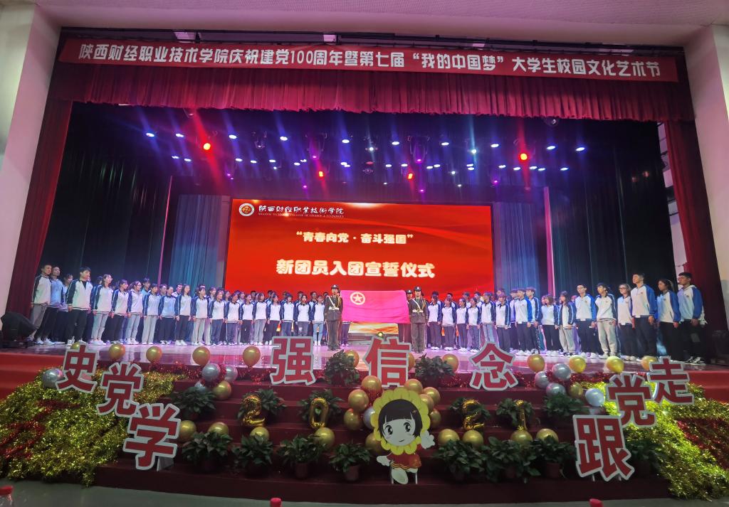 接着举行了“青春向党·奋斗强国”新团员入团宣誓仪式。100名新团员迈着整齐的步伐依次上场,现场佩戴团徽。团委干事王炅带领所有新团员面向团旗庄严宣誓。新团员通过这个仪式将入团誓词牢记在心,深刻体会自己作为一名共青团员的荣誉感和使命感。