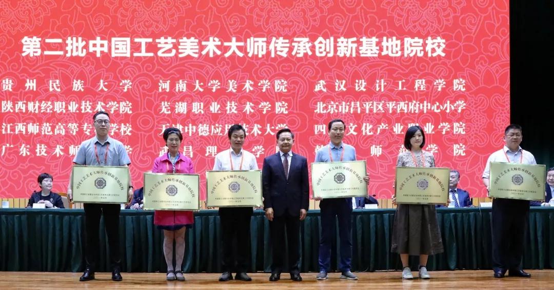2021年5月12日,我院人文艺术学院院长、中国工艺美术大师、全国劳模贺兴文参加了2021年中国工艺美术大师工作会议,我院被授予“中国工艺美术大师传承创新基地院校”荣誉称号。会上,中国轻工业联合会会长、中国工艺美术大师工作委员会主任张崇和出席、讲话并授牌。