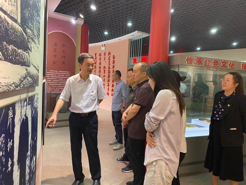 学院副院长张秦龙带领全体党员参观革命历史纪念馆,为全体党员解读红二十五军历史,纪念馆里的每一张照片、每一件实物、每一个场景,都在诉说党与人民心连心、同呼吸、共命运的历史。