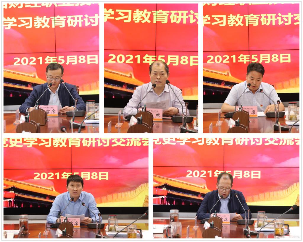 围绕“知史爱国”,用友·新道会计学院党总支书记曾贵荣、大数据与人工智能学院党总支书记曹耀辉、商学院党总支书记张晓战、经济与金融学院党总支负责人陈冬、人事处离退休党总支书记达航行进行了交流发言。他们结合学习近期体会和感受,立足部门职责和岗位工作,分享了自己的学习心得,表示要进一步强化学习,不断提高自身的党性修养,在学懂弄通做实上持续用力,将学习成效转化为工作的实际举措,不断提升工作的水平和质量。