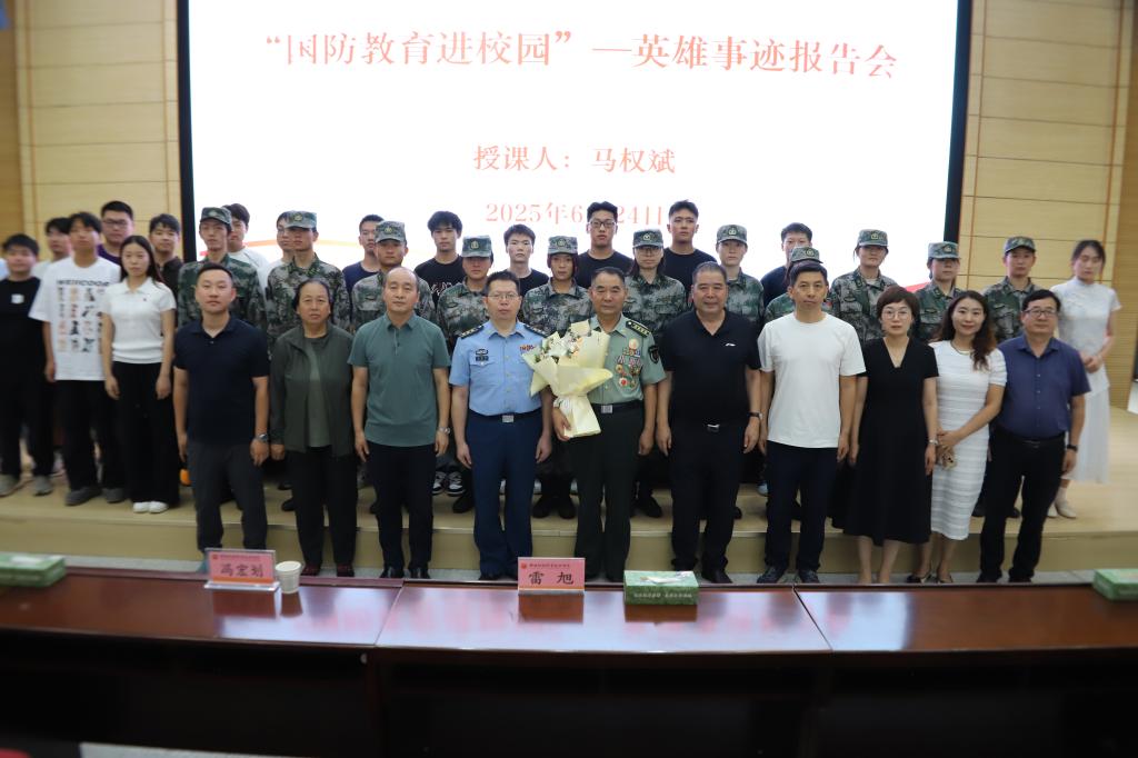 为弘扬爱国主义精神,深入实施时代新人铸魂工程,提高全校师生国防素养,厚植家国情怀,在庆祝中国共产党成立104周年之际,6月24日,我校邀请陕西省南泥湾精神研究会副会长、陕西省爱国主义英模报告团荣誉团长、原西安警备区政治部主任马权斌大校为师生作国防教育报告。秦都区区委常委人武部上校政治委员冯宏划,咸阳山丹丹拥军协会会长张娟娟,我校副校长雷旭、各二级学院专职副书记、辅导员及学生代表400余人参会。报告会由学生工作处处长乔晶策主持。