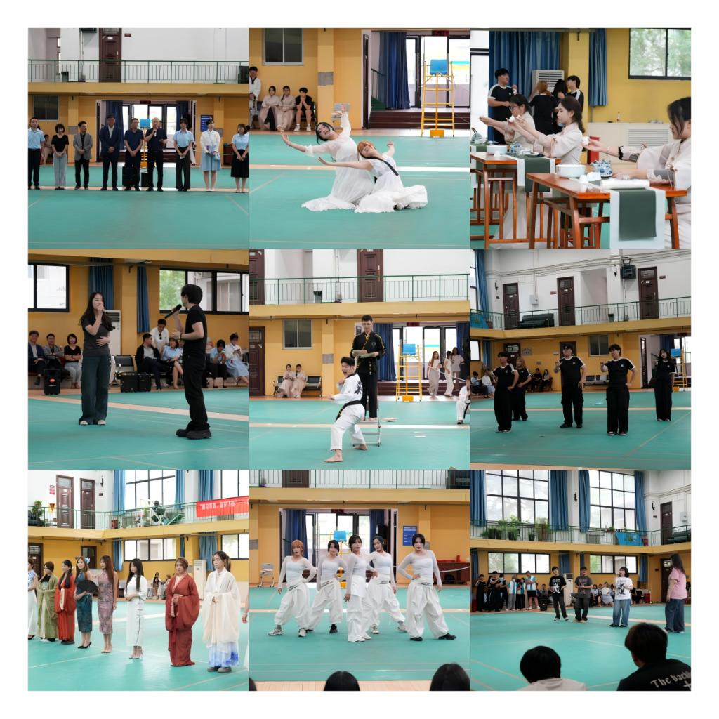 风雨操场化身为艺术舞台,我校各社团轮番展示才艺。现代舞动感四射,歌手深情演唱,走秀社团华服与潮装交辉,茶艺社茶香氤氲,跆拳道表演刚劲有力。全北大学学生亦带来精彩演出,《鹤舞》长袖翻飞如白鹤展翅,K-POP组合劲歌热舞,现代舞以肢体传情,跆拳道踢板气势如虹,传统与现代艺术交织成青春画卷。