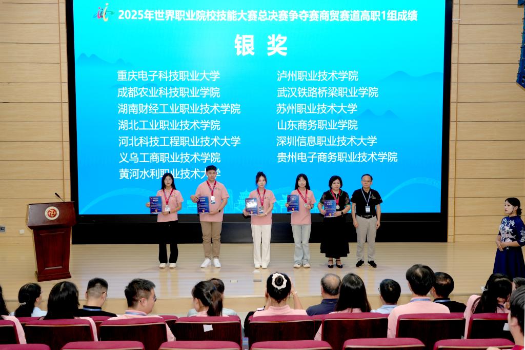 8月29日下午,2025年世界职业院校技能大赛总决赛争夺赛商贸赛道闭赛式在我校学术报告厅举行。裁判长周庆元、助理裁判长徐璟、裁判巡视员赵建明、纪律监督员顾佳滨、仲裁长严长远,我校党委书记高玉峰、校长程书强,党委委员、宣传部部长严丽丽,党委委员、组织部部长穆天楠出席闭赛式,程书强主持。各参赛队选手、指导教师等共计300余人参加。