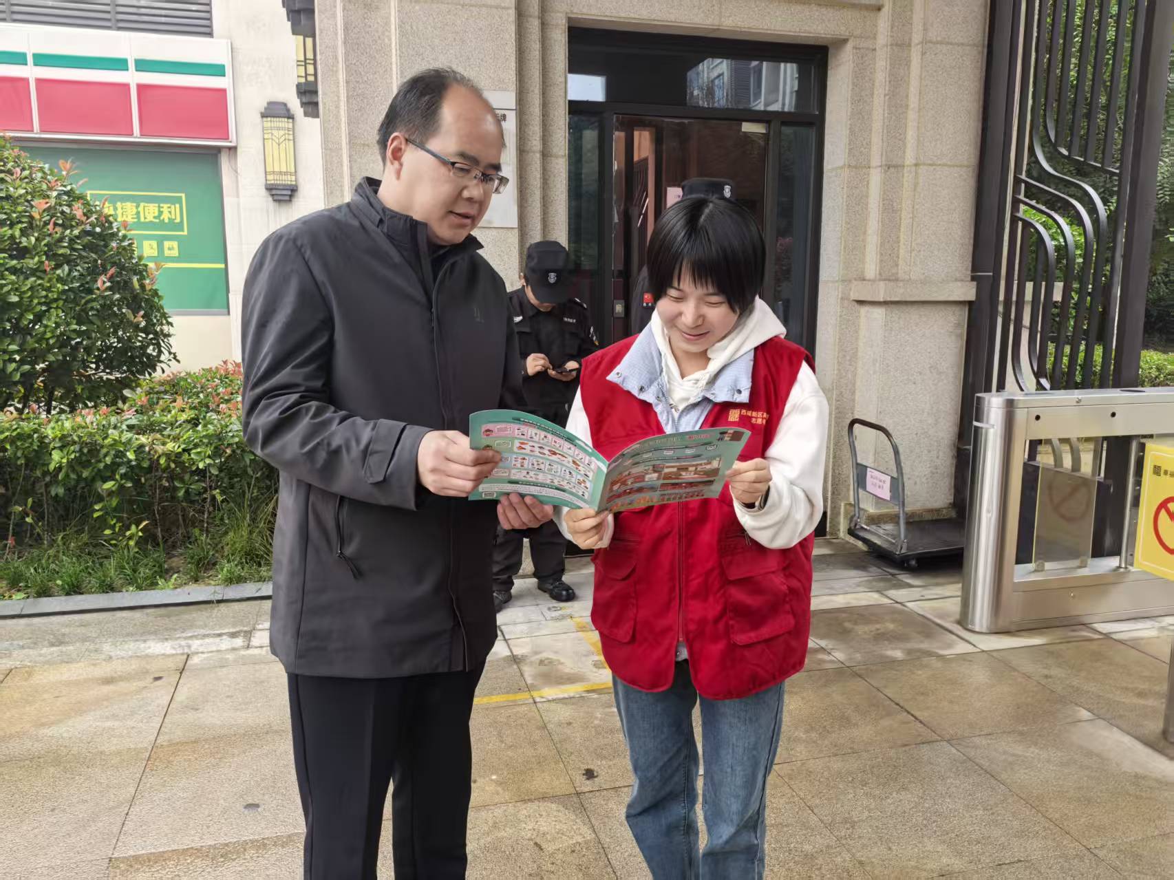 金秋十月,细雨润物无声。2025年10月24日,在深入学习贯彻党的二十届四中全会关于“加快经济社会发展全面绿色转型”决策部署之际,会计学院教师康蒙、王曼娟、李苗一行走进西咸新区泾河新城高庄镇黄冈学府城社区,以“生活垃圾分类宣传培训进小区”为主题,开展了一场兼具政策高度与民生温度的教育实践活动。这场秋雨中的“绿色对话”既是高校落实习近平生态文明思想的生动注脚,也是响应全国城市生活垃圾分类提质增效行动号召的基层实践,为推进西咸新区“无废城市”建设注入了力量。