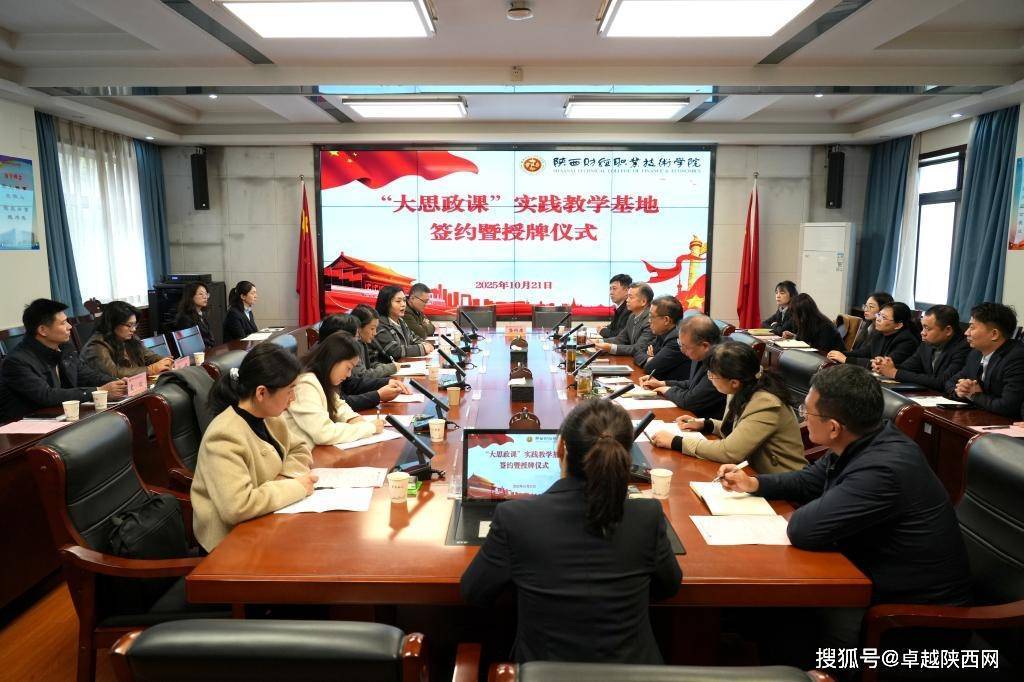 为深入贯彻落实习近平总书记关于“大思政课”建设的重要指示批示精神,推动思政教育与实践教学深度融合,10月21日上午,陕西财经职业技术学院“大思政课”实践教学基地签约暨授牌仪式在办公楼四楼会议室隆重举行。校党委书记高玉峰、校长程书强、党委副书记朱华斌出席仪式,党委宣传部、教务处、马克思主义学院负责人及全体思政课教师齐聚现场;陕西马栏干部学院、中共陕西省委党校(陕西省延安精神研究会)、八路军西安办事处纪念馆等六家单位的代表受邀参会,共同见证校地、校企协同育人的重要时刻,仪式由朱华斌主持。