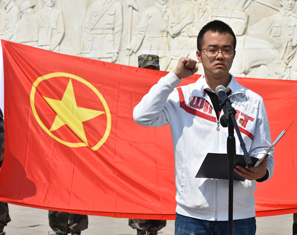 学院国旗护卫队队员迈着铿锵有力的步伐走向纪念碑,向革命烈士敬献花篮。接着全体师生齐唱国歌并向英勇献身的烈士肃立默哀。学生代表赵梓琛发表国旗下的演讲,党委宣传部部长严丽丽以“继承先烈遗志,弘扬五四精神,担当历史使命”为主题给在场的师生讲了一节生动的微团课。商学院团总支书记吕斌带领大家重温了入团誓词。全体共青团员面对鲜艳的团旗,庄严地举起右手,铮铮誓言掷地有声,响彻陵园。陕财职院团委书记窦曼娟同志以“缅怀革命先烈,全面从严治团”为主题寄语青年。她希望各级团组织和全体共青团员在今后的学习、不断自我完善。奠仪式在师生们庄严的团歌声中落下帷幕。