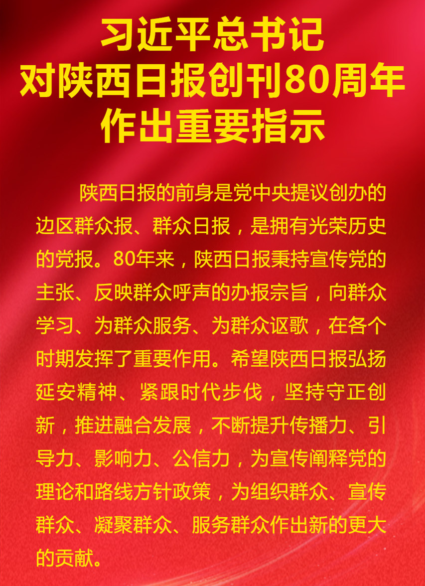 习近平总书记对陕西日报创刊80周年作出重要指示