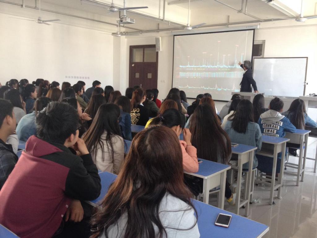 何老师通过相关数据分析,指出目前证券行业在整个金融体系中的重要性及发展潜力,并以华龙证券目前从事的部分业务及产品为例,详细讲解了货币市场基金、债券型基金和股票等证券公司的相关业务内容,从具体的业务层面上加深了同学们对专业知识的认识与理解。何老师还向同学们分析了我国证券行业的现状和人才需求,并欢迎我院金融与证券专业学生进入华龙证券股份公司学习与锻炼。最后,解答了同学们的相关疑问。何老师丰富的专业知识、精彩的介绍吸引了同学们的踊跃参与,讲座在热烈的气氛中圆满结束。