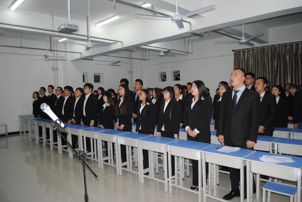 在庄严的国歌声中,大会拉开序幕。主持人介绍会议来宾及会议议程,由上一届系学生会主席刘涛同学对过去一年的工作做了总结。张晓战老师宣读了《会计三系第十届学生会任命决定》。接着由主任邓迪夫老师,专职副书记张晓战老师为新一届学生会干部颁发聘书,上一届学生干部为新任干部佩戴胸牌。随后新一届学生会干部代表魏嘉伟同学做出精彩演讲。专职副书记张晓战老师对上一届系学生会的工作给予肯定,对新一届学生会提出“境界”、“奉献”、“责任”、“团结”、“创新”、“影响”、“能力”、“珍惜”八个必要的自身修养。主任邓迪夫老师就学生会干部的职责与作用发表讲话强调作为一名学生干部应有一个良好的态度,要求学生会的每一名成员在生活中都做好带头作用。最后会议在全体人员的团歌声中落下帷幕,取得圆满成功。
