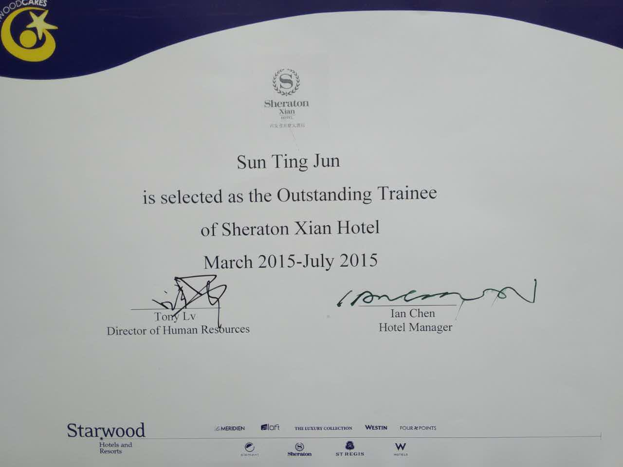 2015年9月9日从西安喜来登大酒店传来好消息,我院经济与金融管理系2013级酒店管理专业孙婷君、金悦同学荣获优秀实习生称号。