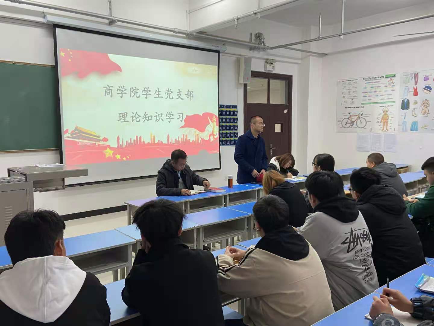 为了增强学生党的理论知识修养,2020年11月25日下午4点,在综合楼615教室,商学院学生党支部召开理论知识学习会议。参加本次会议的有商学院学生党支部组织委员吕斌老师、宣传委员王亚凤老师、辅导员郭家赫老师、学生党员及积极分子共计70人。