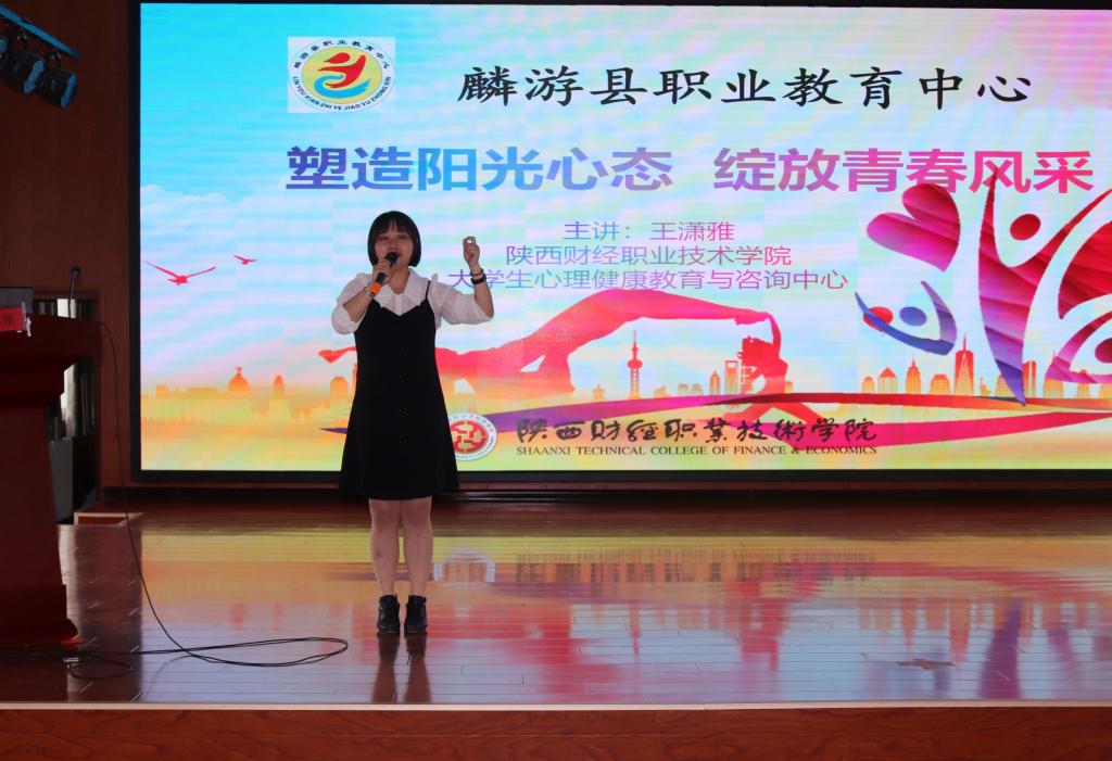 会上,何蕾从学院发展、办学特色、学生规模、专业设置及学生就业等方面进行了详细介绍,以近年来麟游职中向我院输送的优秀学生的优秀事迹为例,介绍学院的人才培养质量,并希望越来越多麟游职中的学生能够借助中高职衔接的“直通车”,为学院输送更多优质生源。王潇雅为全校师生作“塑造阳光心态 绽放青春色彩”心理健康教育专题报告,以“5·25心理健康节”导入,为麟游职中师生作了一场精彩的互动体验式心理健康知识讲座,现场掌声不断,气氛热烈。